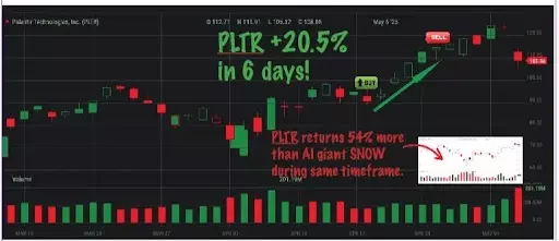 PLTR surged +20.5% in just 6 days — outpacing AI heavyweight Snowflake by 53% in the same window.