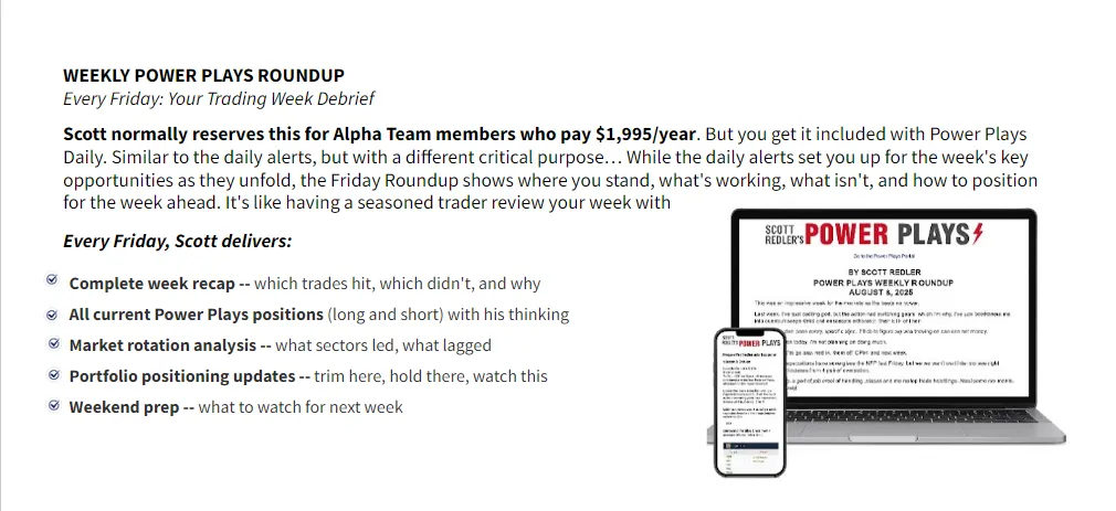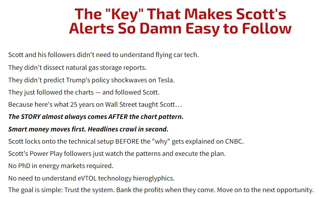 On the first trading day after you sign up: You’ll get your first Power Play alert with exact entry and target levels — identified in 30 seconds using Scott’s systematic approach.