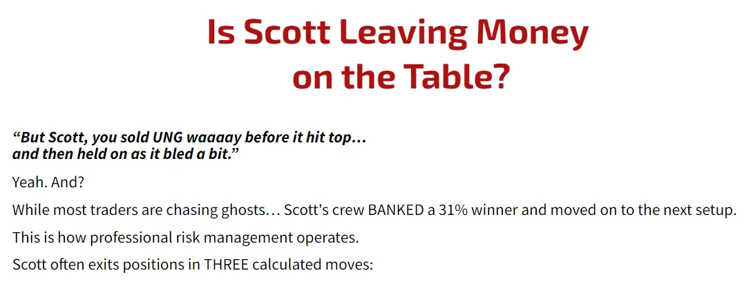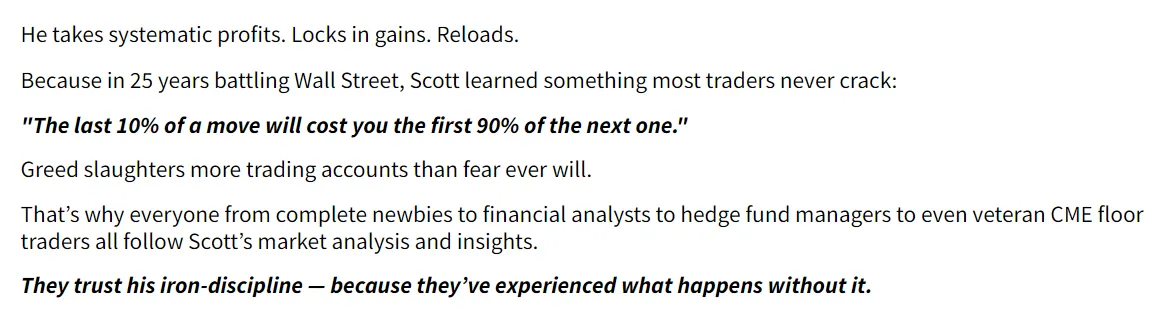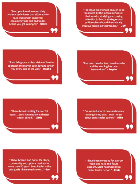 We’re offering this special “charter member” price for a limited time for one simple reason: we want to gather a new, energized group of traders to kick off the next year of trading with Scott. We know that once you experience the clarity and discipline of this approach, you’ll want to be a member for a long time to come.